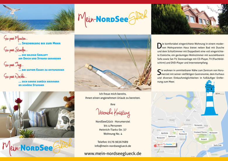 Sie wohnen in unmittelbarer Nähe zum Zentrum von Horumersiel mit seiner vielfältigen Gastronomie, dem Kurhaus und diversen Einkaufsmöglichkeiten in fußläufiger Entfernung zum Meer.